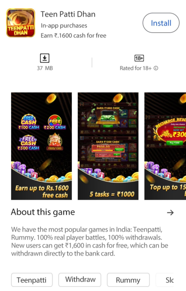 - “Teen Patti Dhan Official Website” सर्च करें।