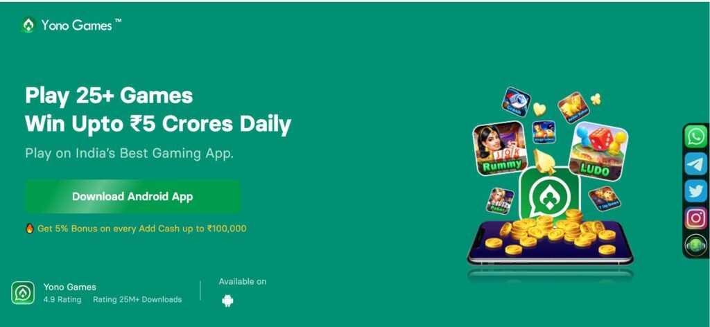 Yono Game एक ऑनलाइन गेमिंग ऐप है जहाँ आप मोबाइल से 55+ उपलब्ध अलग -अलग गेम खेल सकते हैं।